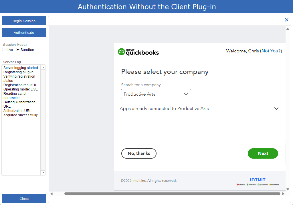 The server-side plug-in comes with a free copy of the single user (client) plug-in to allow for development and authentication with QuickBooks online.